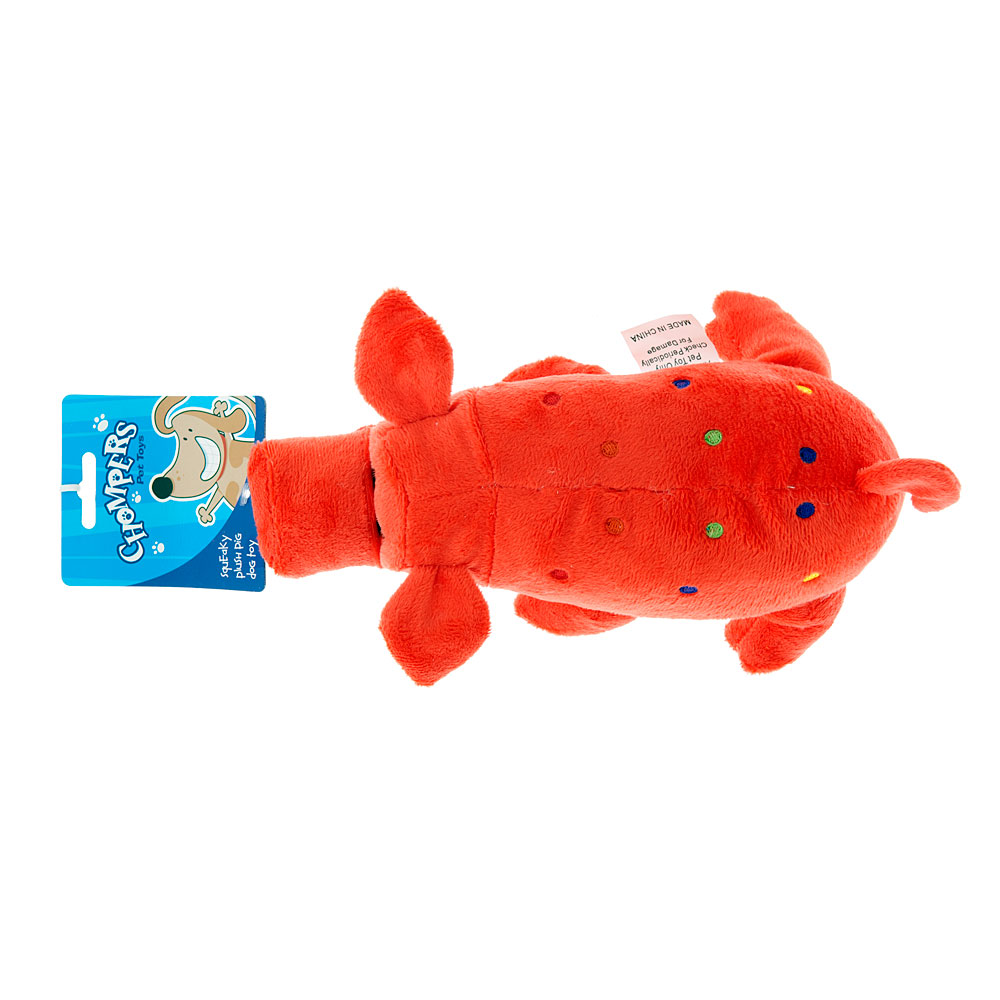 Plush pig dog toy with squeaker. Available in 3 assorted colours – red, blue & pink. Approx. 25 cm in length.